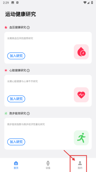 1、打開健康研究類APP首頁(yè),點(diǎn)擊底部我的選項(xiàng),進(jìn)入個(gè)人中心頁(yè)面。