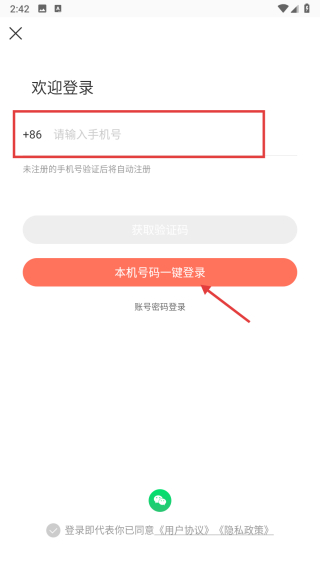 3、在登錄頁面,可選擇本機(jī)號(hào)碼一鍵登錄或賬號(hào)密碼登錄方式。若選擇賬號(hào)密碼登錄,輸入手機(jī)號(hào)碼和密碼。