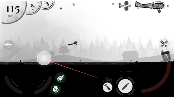 采用2D橫版畫面,黑白色背景搭配局部彩色特效,既凸顯戰(zhàn)爭的沉重感,又讓戰(zhàn)機戰(zhàn)斗特效更具視覺沖擊力。