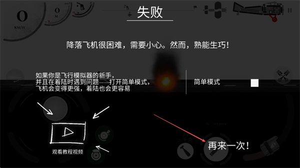 4、若降落失敗,點擊再來一次!重新挑戰(zhàn),熟練后可掌握降落技巧。