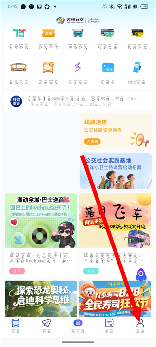 1、打開無錫智慧公交,點擊底部我的,進入個人頁面。