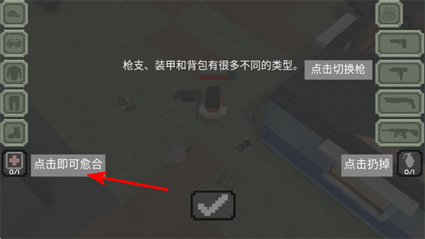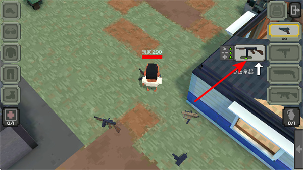 3、點(diǎn)擊拾取強(qiáng)力槍械,槍械拾取是提升戰(zhàn)力的核心動作,獲取優(yōu)質(zhì)槍械可高效消滅敵人,在戰(zhàn)斗中占據(jù)優(yōu)勢。