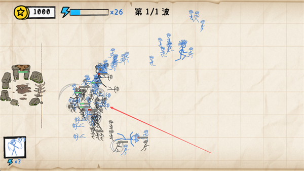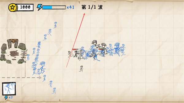 以作業(yè)本為背景打造戰(zhàn)場(chǎng),鉛筆線(xiàn)條繪制的兵種與敵軍充滿(mǎn)童趣,搭配紙張紋理視覺(jué)效果,營(yíng)造獨(dú)特的“紙上戰(zhàn)爭(zhēng)”氛圍。