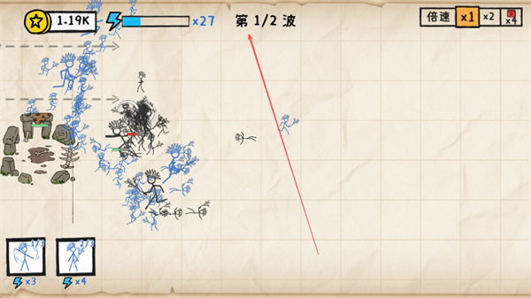1、在第1/2波戰(zhàn)斗中,派遣士兵與敵方交戰(zhàn),可點(diǎn)擊倍速按鈕加快戰(zhàn)斗進(jìn)程。