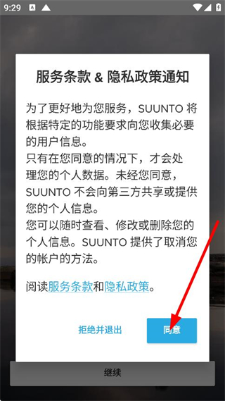 1、在服務(wù)條款&隱私政策通知彈窗中,點擊同意,進入登錄頁面。