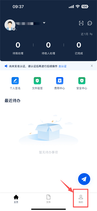 1、打開辦公類APP首頁,點擊底部我的選項,進(jìn)入個人中心頁面。