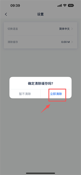 4、在確認(rèn)框中,點擊立即清除按鈕,完成APP緩存的清理操作。
