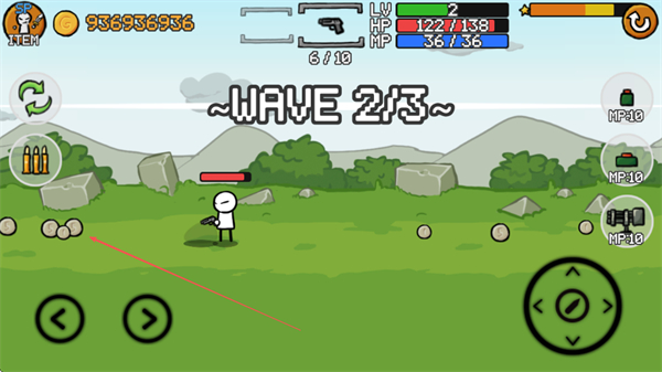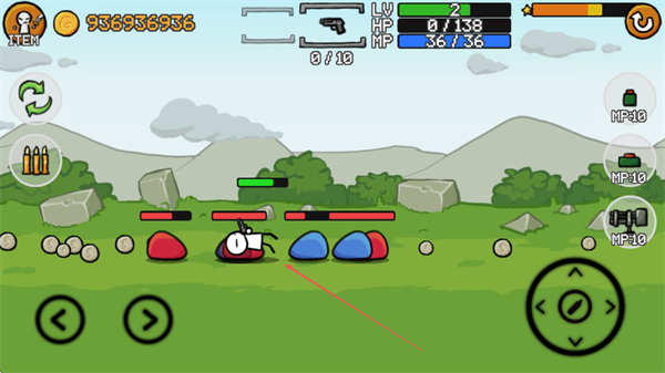 2、持續(xù)攻擊紅、藍(lán)色敵人,躲避攻擊,收集金幣和彈藥,提升戰(zhàn)斗能力。