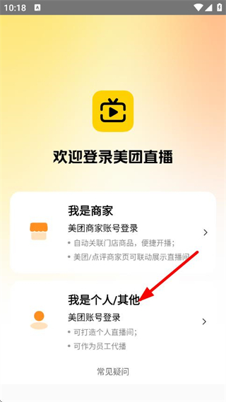 1、在登錄選擇頁面,點(diǎn)擊我是個(gè)人/其他,進(jìn)入個(gè)人賬號(hào)選擇頁面。