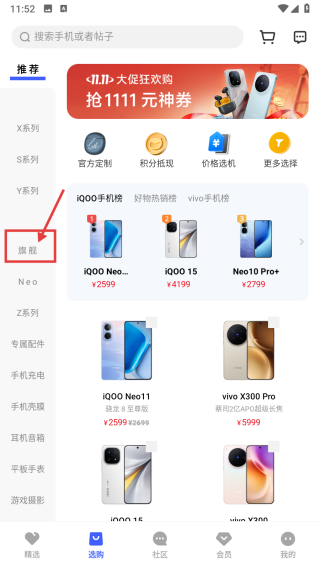 2、在選購(gòu)頁(yè)面,點(diǎn)擊旗艦系列,進(jìn)入旗艦系列手機(jī)列表頁(yè)面。