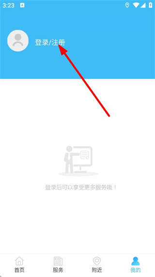 2、在個(gè)人頁(yè)面,點(diǎn)擊登錄/注冊(cè),進(jìn)入登錄頁(yè)面。