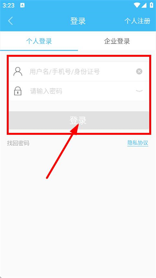 3、在登錄頁(yè)面,輸入用戶名和密碼后,點(diǎn)擊登錄,完成賬號(hào)登錄操作。