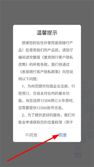 1、在溫馨提示彈窗中,點擊同意,進(jìn)入登錄頁面。