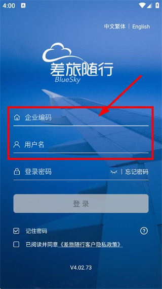 2、隨后我們在登錄頁面,輸入企業(yè)編碼和用戶名。