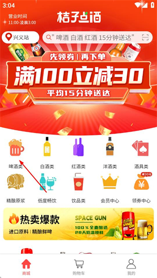 1、在桔子點(diǎn)酒商城頁面,點(diǎn)擊啤酒類選項(xiàng),進(jìn)入啤酒商品列表頁面。