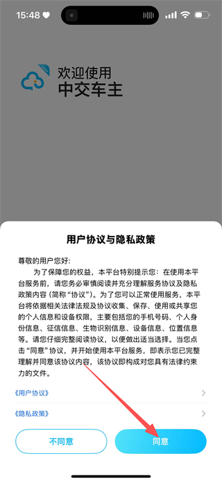 1、在用戶協(xié)議與隱私政策彈窗中,點(diǎn)擊同意,進(jìn)入登錄頁面。