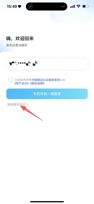 2、在登錄頁面,點(diǎn)擊其他登錄方式,進(jìn)入手機(jī)號登錄頁面。