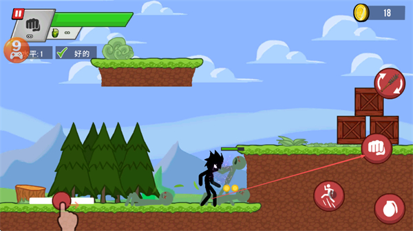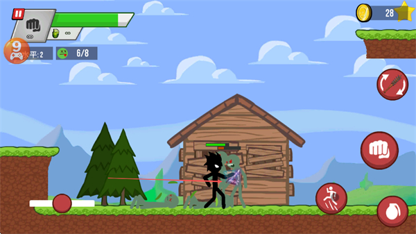 1、操控火柴人移動(dòng),靠近道具獲取資源,收集金幣,提升戰(zhàn)力。