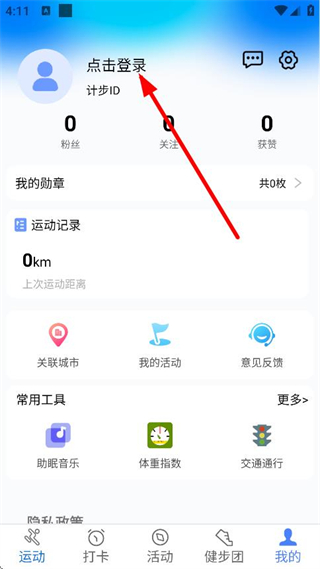 3、在個(gè)人頁面,點(diǎn)擊點(diǎn)擊登錄,進(jìn)入登錄選擇頁面。
