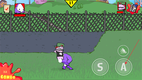 3、點(diǎn)擊右下角的A鍵,可以抓住敵人并舉起進(jìn)行控制。