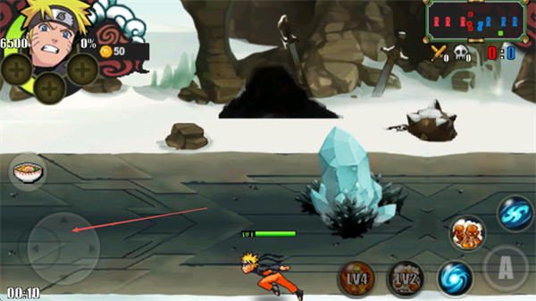 2、滑動左側(cè)搖桿,操控鳴人在雪地場景移動,探索地形,準備與敵人交戰(zhàn)。
