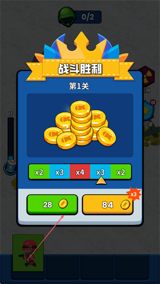 4、戰(zhàn)斗勝利后,領(lǐng)取金幣獎(jiǎng)勵(lì)如28枚,用于提升小兵戰(zhàn)力,繼續(xù)挑戰(zhàn)后續(xù)關(guān)卡。