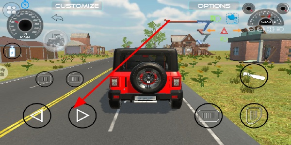 1、點擊油門按鈕,控制車輛前進,在不同路況中行駛,體驗越野駕駛的樂趣,推進游戲進程。