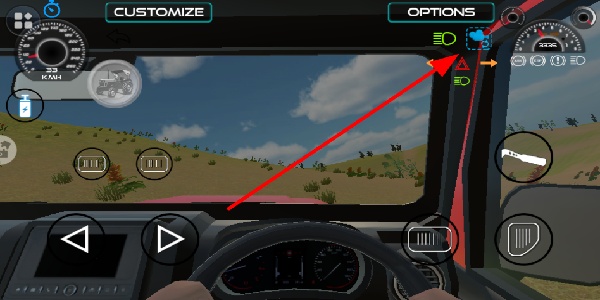 4、點擊提示燈和切換視角按鈕,調(diào)整車輛燈光和駕駛視角,提升駕駛體驗,更好地觀察路況。