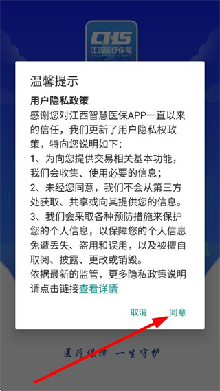 1、在用戶隱私政策彈窗中,點擊同意,進入首頁。