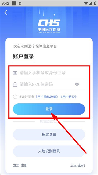 4、輸入手機號或身份證號、密碼,點擊登錄,完成賬號登錄操作。