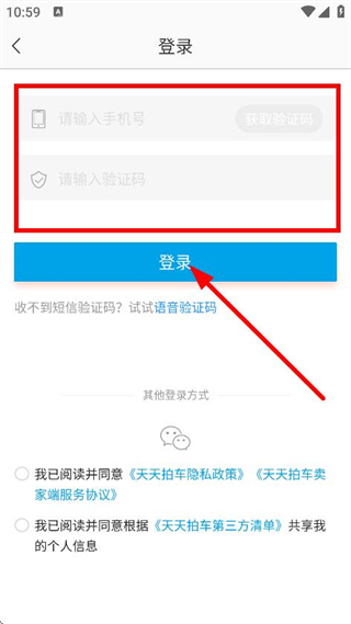 4、輸入手機號、驗證碼,點擊登錄,完成賬號登錄操作。