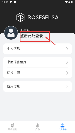 2、在個人中心,點(diǎn)擊點(diǎn)擊此處登錄區(qū)域,進(jìn)入登錄界面。