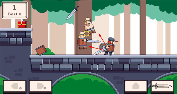 1、進(jìn)入森林戰(zhàn)斗場(chǎng)景后,操控角色使用武器攻擊敵人,通過(guò)走位與攻擊配合。