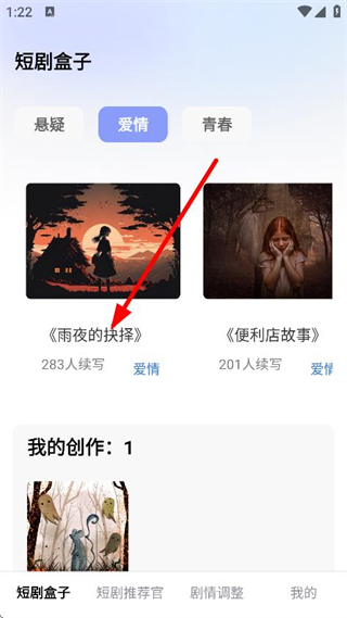 2、在愛情類短劇列表中,點(diǎn)擊雨夜的抉擇,進(jìn)入短劇內(nèi)容頁面。