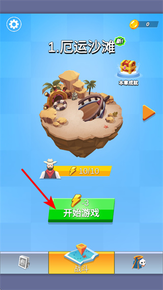 1、在游戲中,點(diǎn)擊開始游戲按鈕進(jìn)入厄運(yùn)沙灘關(guān)卡,這是開啟冒險(xiǎn)戰(zhàn)斗的關(guān)鍵操作,可操控英雄在沙灘場(chǎng)景展開戰(zhàn)斗。