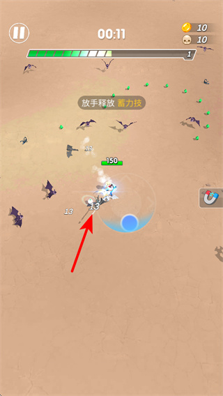 3、釋放蓄力技攻擊敵人,技能釋放是消滅敵人的關(guān)鍵環(huán)節(jié),蓄力后釋放可對(duì)范圍內(nèi)敵人造成大量傷害,快速清理戰(zhàn)場(chǎng)。