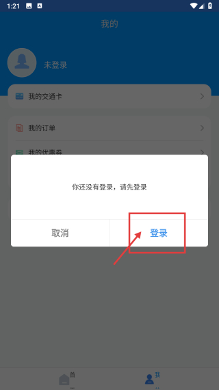 3、在提示彈窗中,點擊登錄選項,進(jìn)入賬號登錄界面。