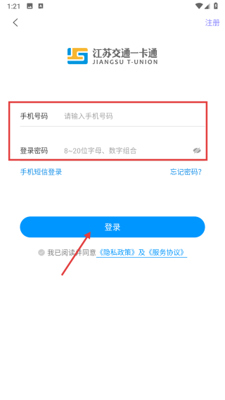 4、在登錄界面,填寫手機號碼、登錄密碼并勾選協(xié)議后,點擊登錄按鈕,完成賬號登錄。