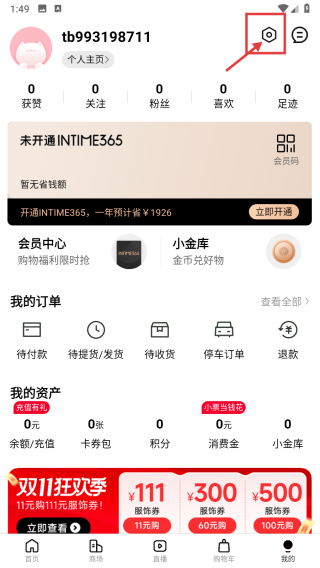 2、在個(gè)人中心,點(diǎn)擊右上角設(shè)置圖標(biāo),進(jìn)入設(shè)置界面。