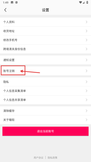 3、在設(shè)置界面,點(diǎn)擊賬號(hào)注銷選項(xiàng),進(jìn)入注銷說(shuō)明頁(yè)面。
