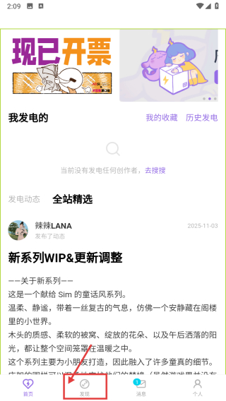 1、打開創(chuàng)作類APP,點擊底部發(fā)現(xiàn)選項,進入發(fā)現(xiàn)頁面。