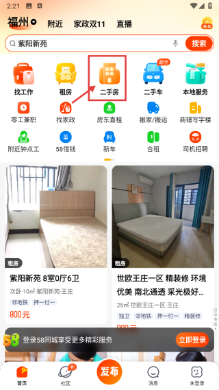 1、打開(kāi)同城服務(wù)APP,點(diǎn)擊二手房分類(lèi)圖標(biāo),進(jìn)入二手房專(zhuān)區(qū)。