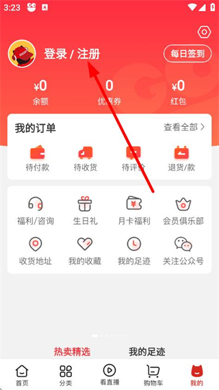 2、在個(gè)人頁面,點(diǎn)擊登錄/注冊(cè),進(jìn)入登錄頁面。