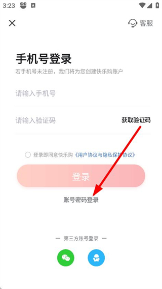 3、在登錄頁面,點(diǎn)擊賬號(hào)密碼登錄,切換到賬號(hào)密碼登錄方式。