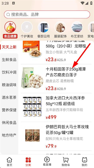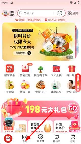 1、在APP首頁(yè),點(diǎn)擊底部分類,進(jìn)入商品分類頁(yè)面。