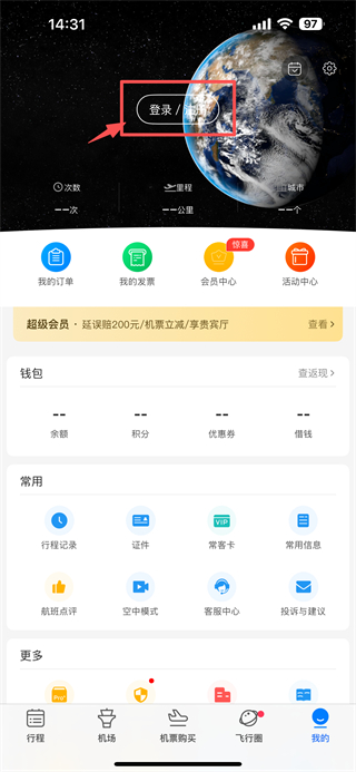 2、在個人中心,點擊登錄/注冊區(qū)域,進入登錄界面。
