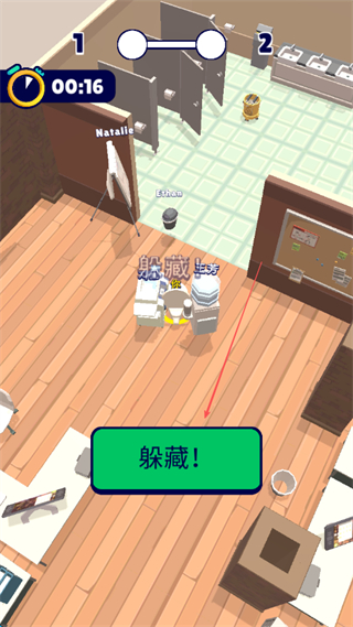 1、在場景中找到可躲藏的區(qū)域,點擊躲藏!按鈕,讓角色隱藏起來,躲避追捕者。