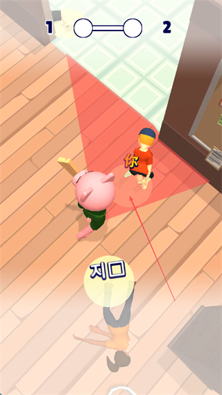 3、追捕者需進入視野范圍紅色區(qū)域發(fā)現(xiàn)并捕捉躲藏的玩家如橙色衣服角色。