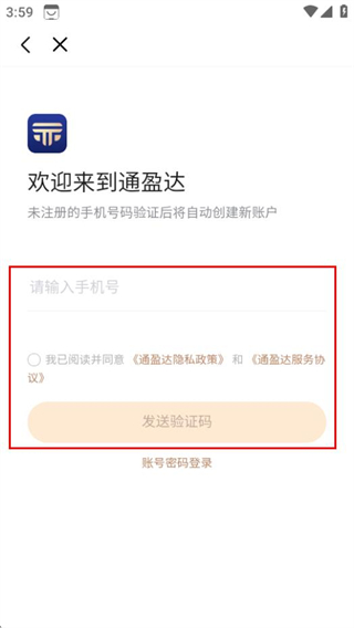 3、在驗證碼登錄頁面,輸入手機(jī)號并勾選協(xié)議,點擊發(fā)送驗證碼,進(jìn)入下一步。