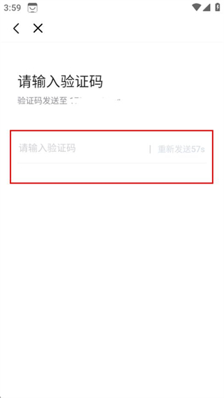 4、在驗證碼輸入頁面,輸入收到的驗證碼,完成登錄賬號操作。